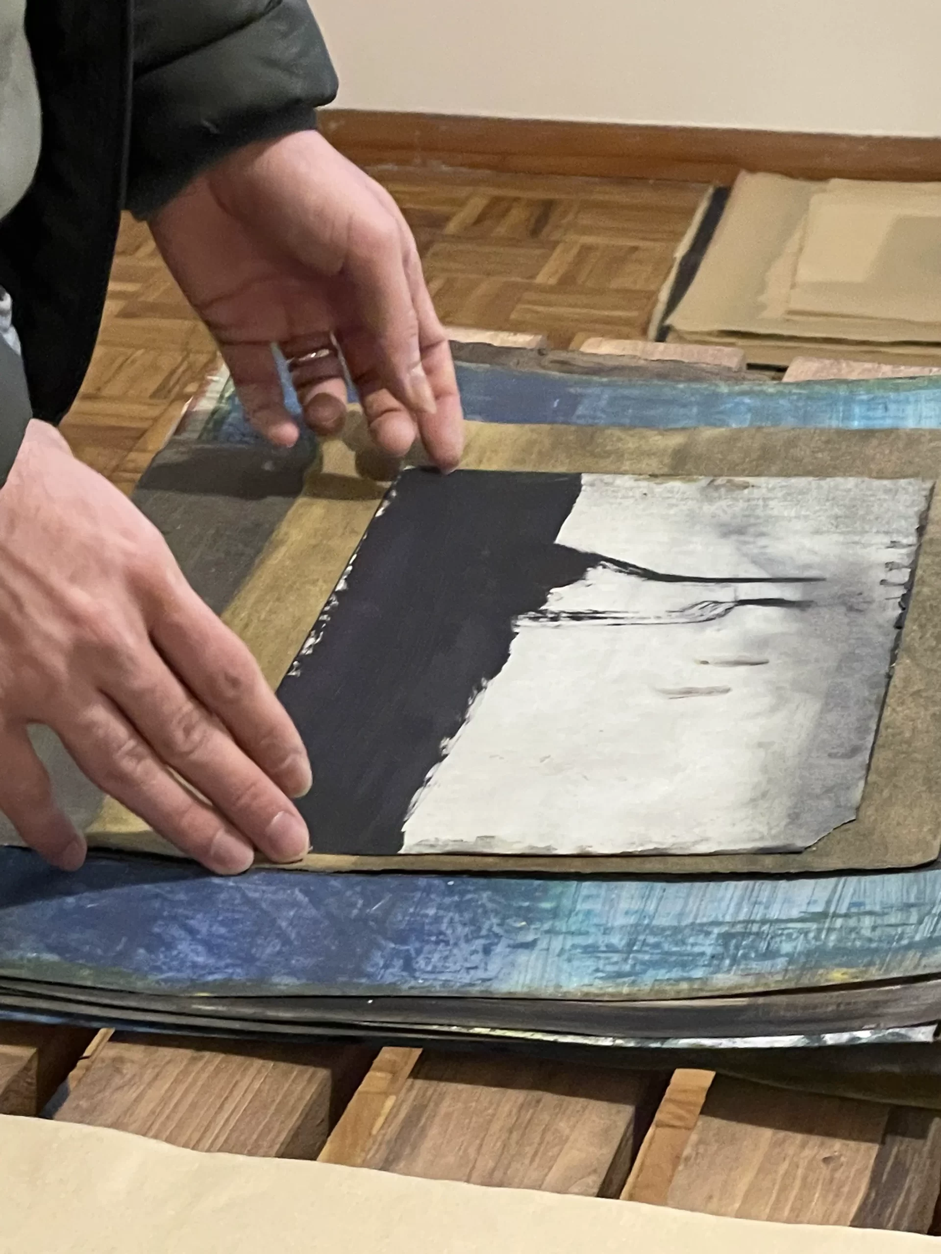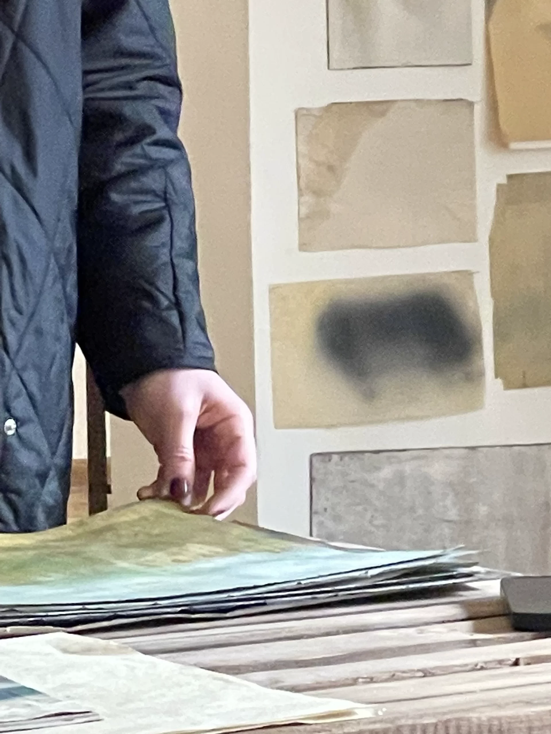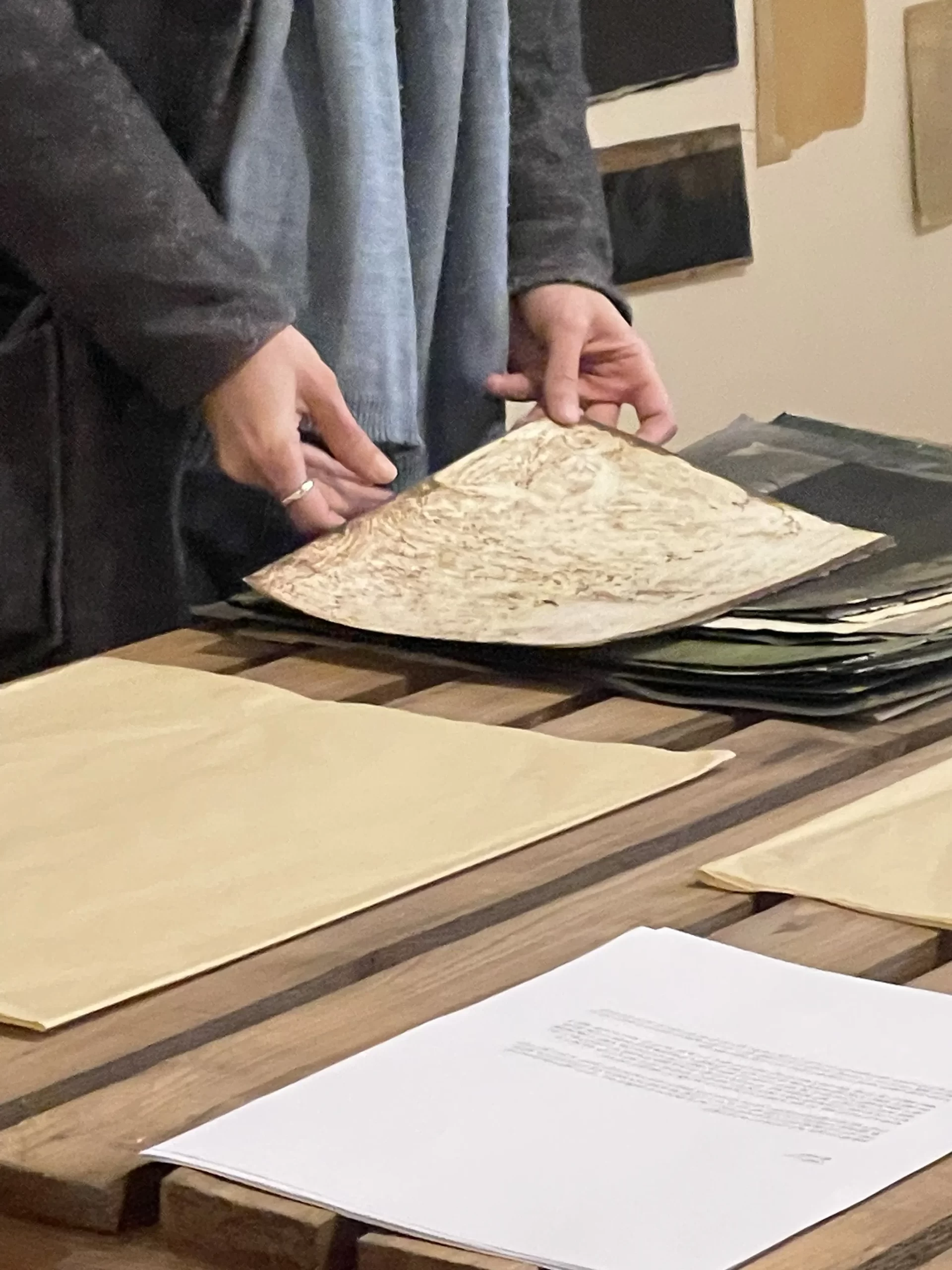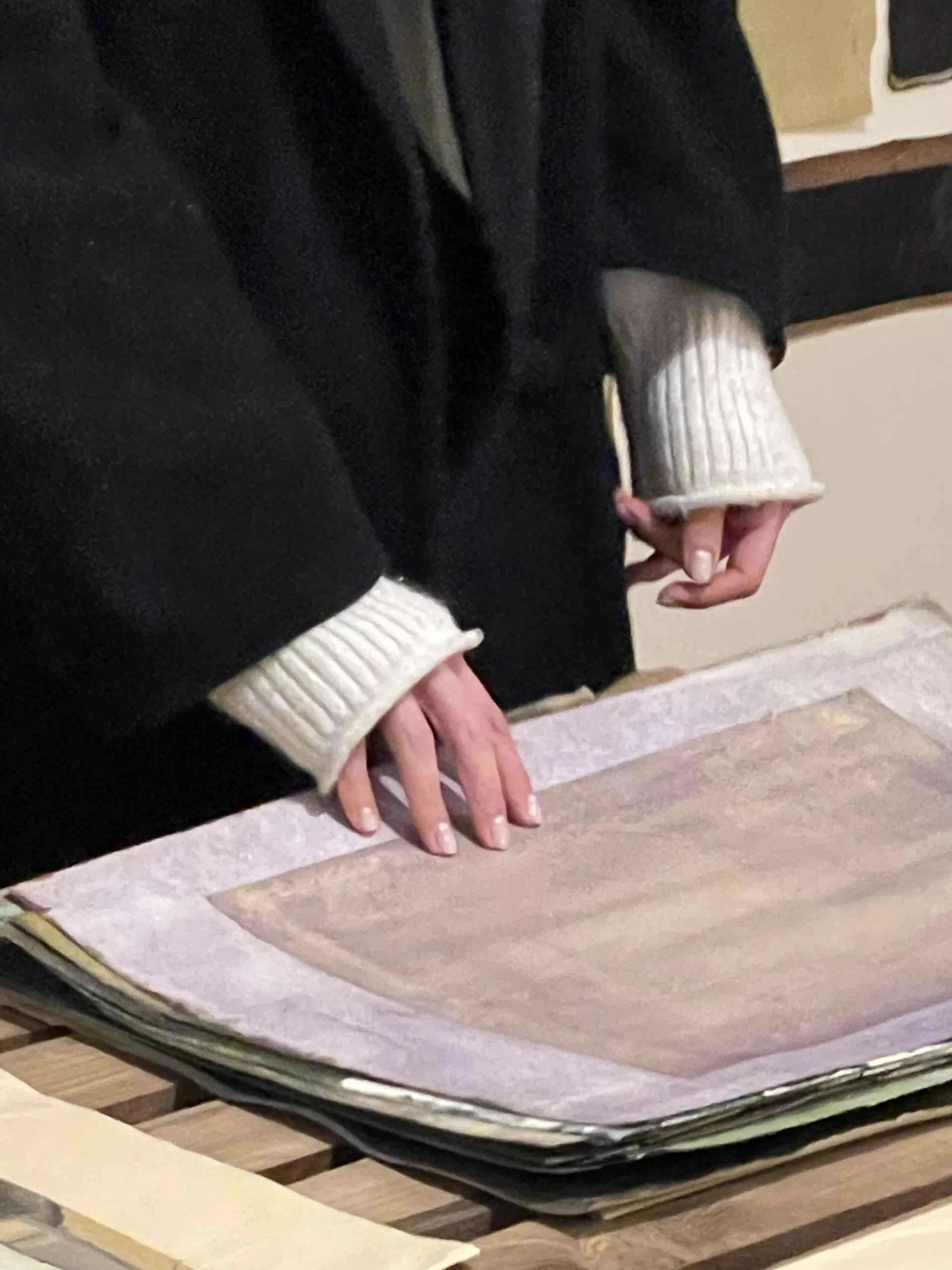 In the intimate ambiance of my Tehran studio, I orchestrated an open studio responsive ode to the unfolding narratives of “women life freedom” and transformative revolution. Confronting the complexities of shuttered or challenged galleries in Iran, I chose the canvas of my studio to showcase artworks steeped in the spirit of a bygone era, offering an exclusive and personal viewing experience. Capturing the essence of this occasion, I curated photographs focusing on the hands of the audience, acknowledging their profound significance. These images, reminiscent of my abstract compositions, encapsulate intricate narratives, unraveling a collection woven around the tactile interplay between hands, papers, freedom, and touch. The hands metamorphose into storytellers, articulating profound narratives that complement and enrich my artistic manifesto. Moreover, within my photographic artworks, hands assume symbolic importance, transcending their physicality. They embody activism, encapsulating the meaningful role hands play in championing change and expressing profound ideas. This collection stands as a testament to the activist spirit embodied in the silent eloquence of hands, weaving a narrative that extends beyond the photograph, resonating with the stories of those who dared to touch, feel, and strive for freedom.