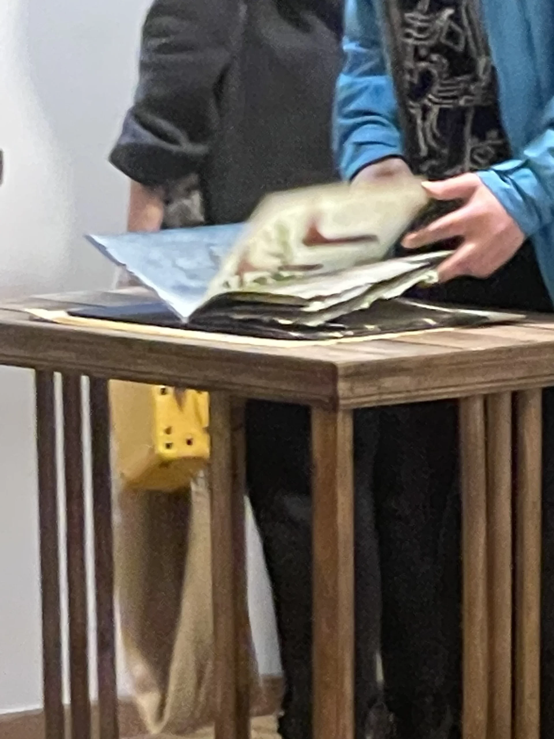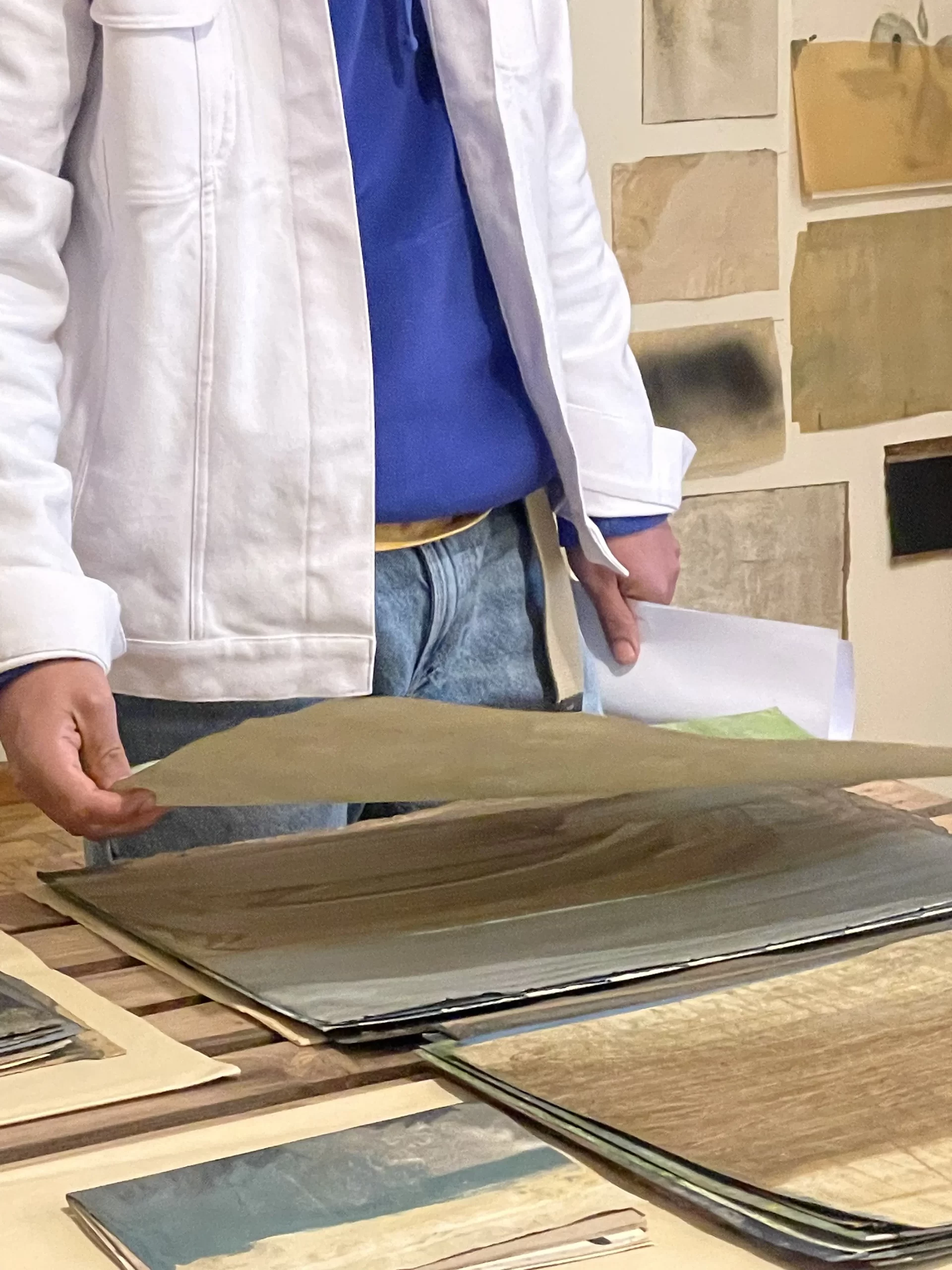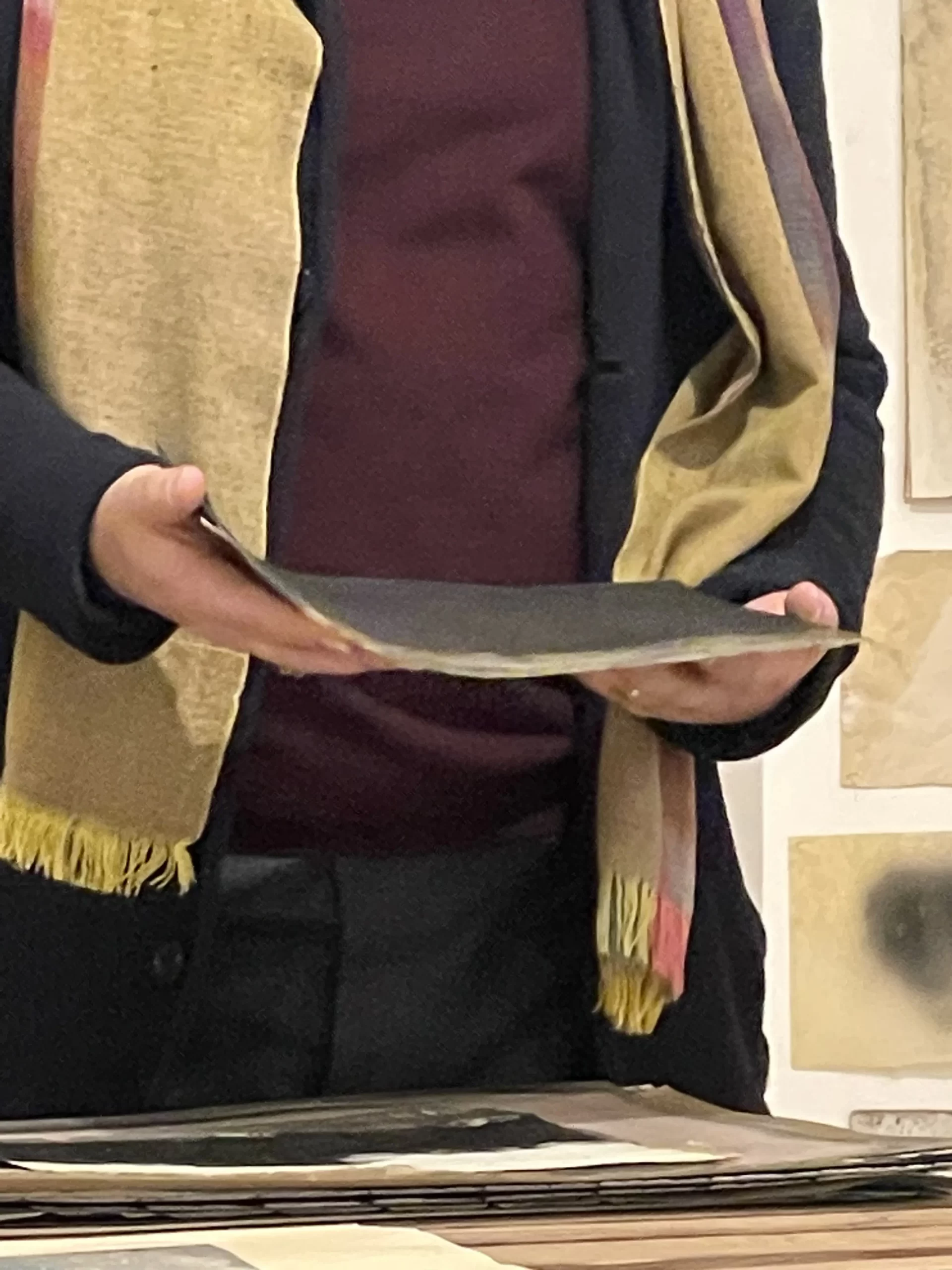 In the intimate ambiance of my Tehran studio, I orchestrated an open studio responsive ode to the unfolding narratives of “women life freedom” and transformative revolution. Confronting the complexities of shuttered or challenged galleries in Iran, I chose the canvas of my studio to showcase artworks steeped in the spirit of a bygone era, offering an exclusive and personal viewing experience. Capturing the essence of this occasion, I curated photographs focusing on the hands of the audience, acknowledging their profound significance. These images, reminiscent of my abstract compositions, encapsulate intricate narratives, unraveling a collection woven around the tactile interplay between hands, papers, freedom, and touch. The hands metamorphose into storytellers, articulating profound narratives that complement and enrich my artistic manifesto. Moreover, within my photographic artworks, hands assume symbolic importance, transcending their physicality. They embody activism, encapsulating the meaningful role hands play in championing change and expressing profound ideas. This collection stands as a testament to the activist spirit embodied in the silent eloquence of hands, weaving a narrative that extends beyond the photograph, resonating with the stories of those who dared to touch, feel, and strive for freedom.