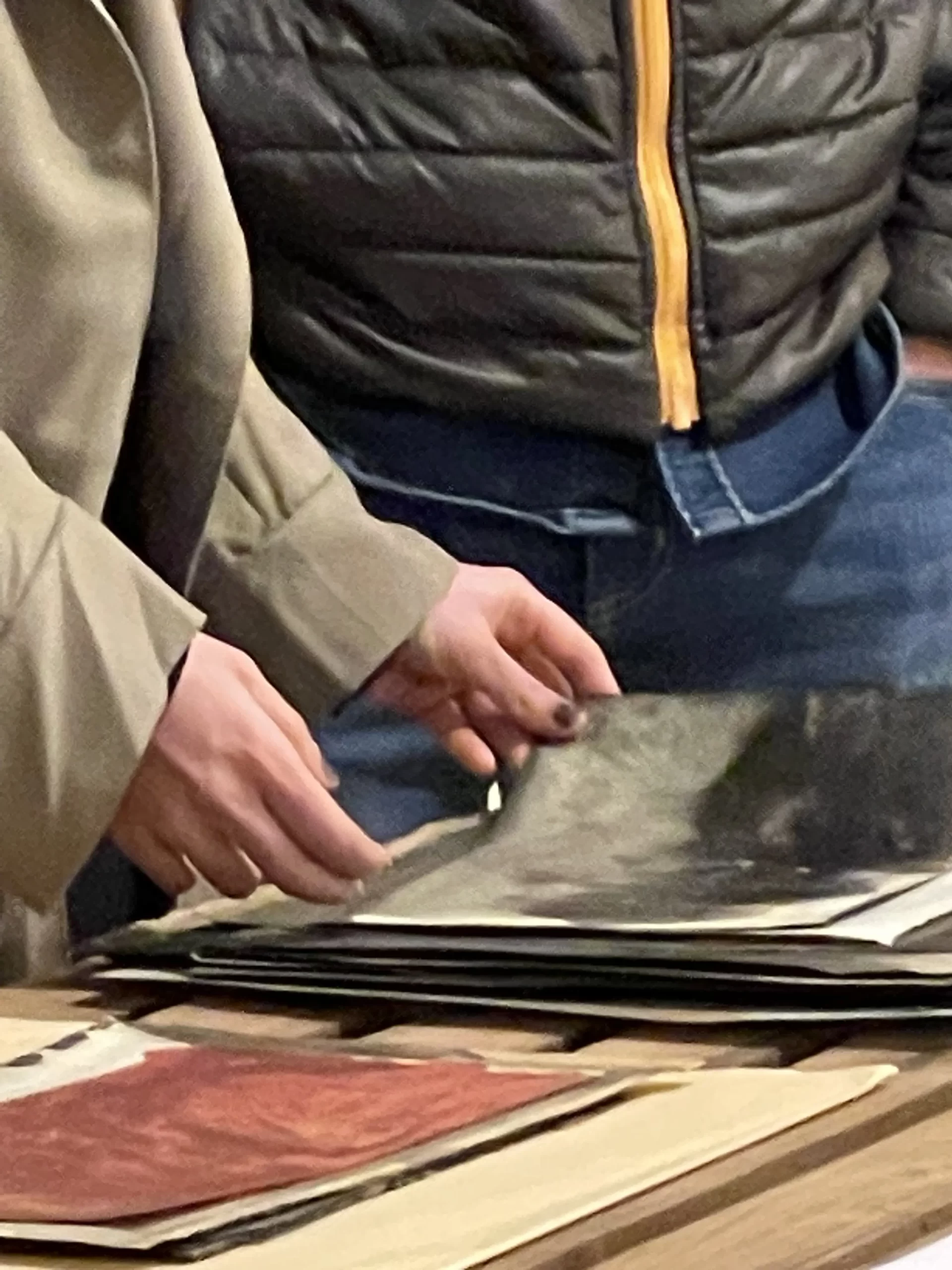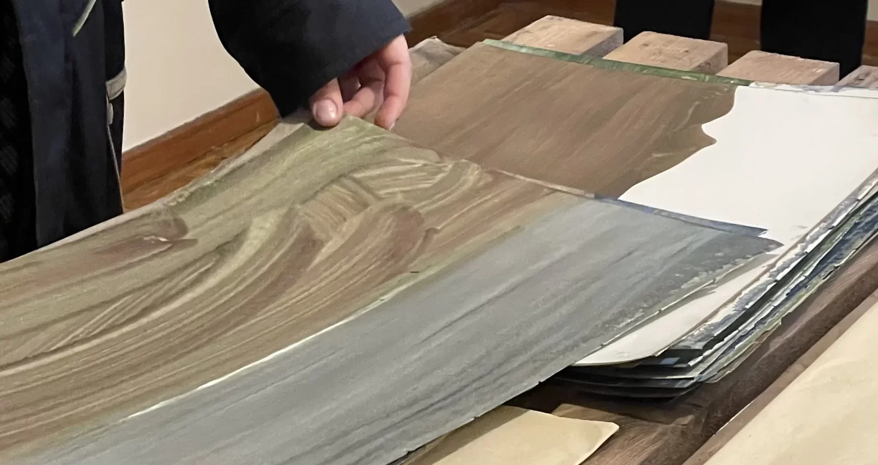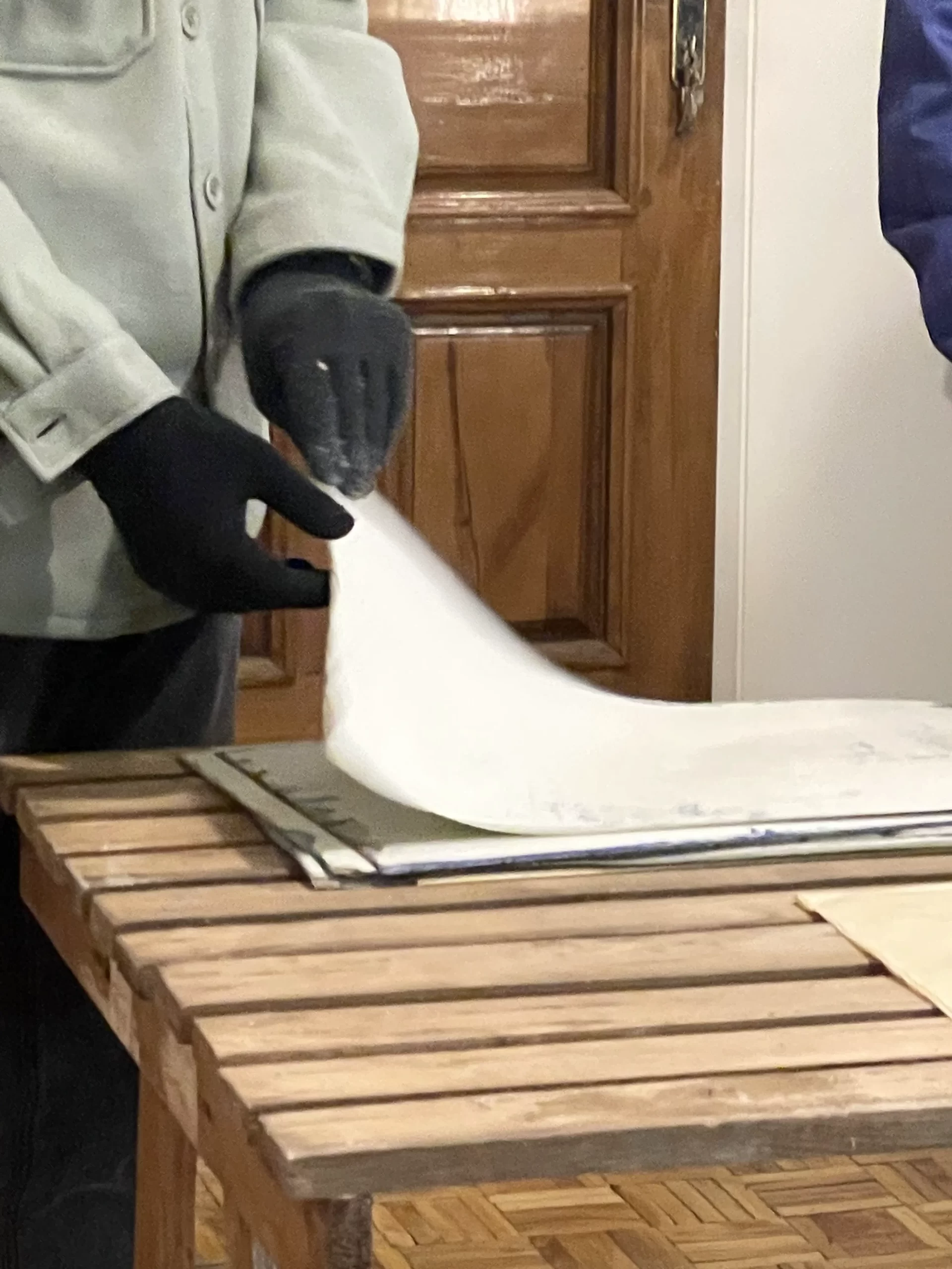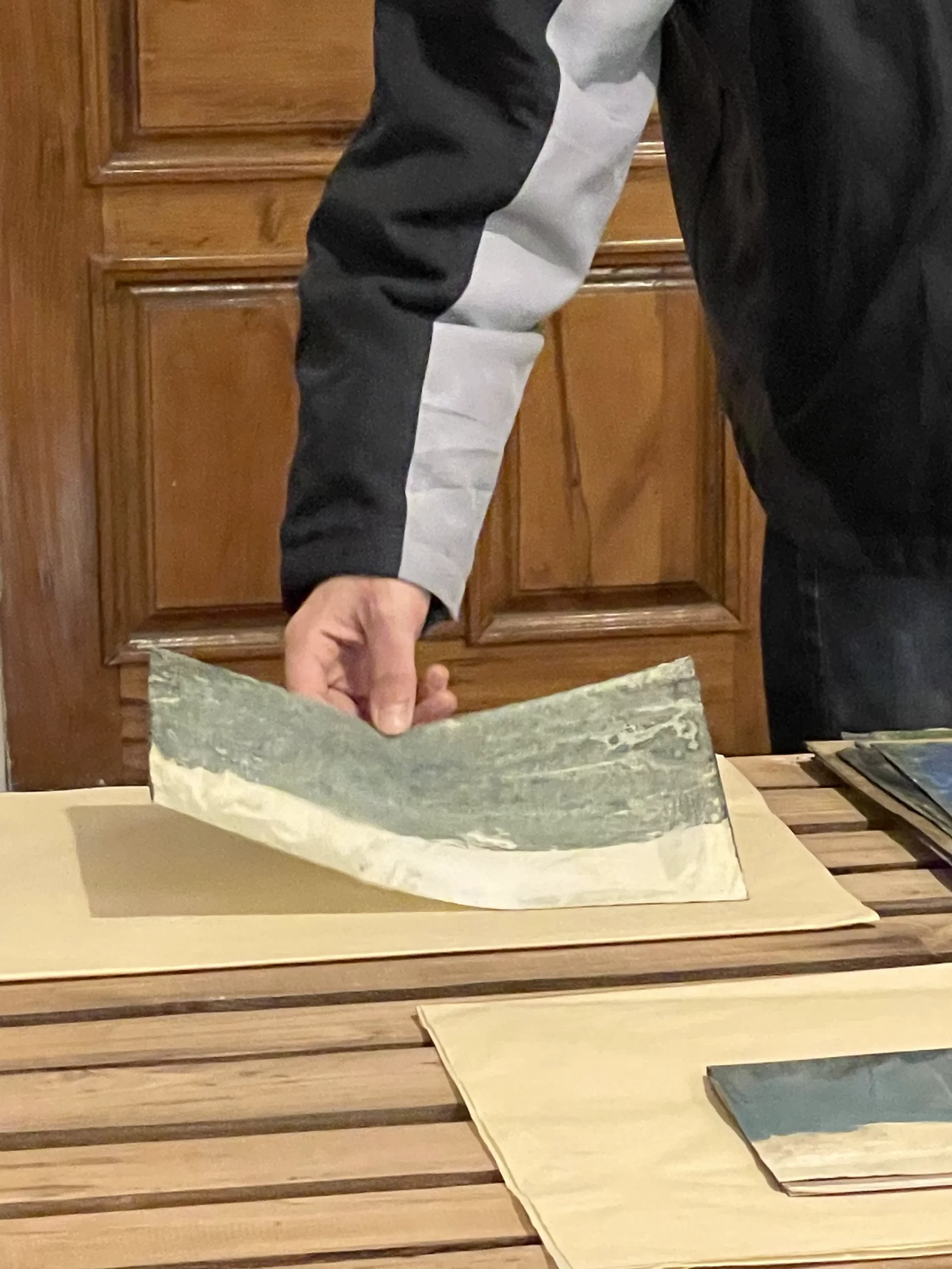 In the intimate ambiance of my Tehran studio, I orchestrated an open studio responsive ode to the unfolding narratives of “women life freedom” and transformative revolution. Confronting the complexities of shuttered or challenged galleries in Iran, I chose the canvas of my studio to showcase artworks steeped in the spirit of a bygone era, offering an exclusive and personal viewing experience. Capturing the essence of this occasion, I curated photographs focusing on the hands of the audience, acknowledging their profound significance. These images, reminiscent of my abstract compositions, encapsulate intricate narratives, unraveling a collection woven around the tactile interplay between hands, papers, freedom, and touch. The hands metamorphose into storytellers, articulating profound narratives that complement and enrich my artistic manifesto. Moreover, within my photographic artworks, hands assume symbolic importance, transcending their physicality. They embody activism, encapsulating the meaningful role hands play in championing change and expressing profound ideas. This collection stands as a testament to the activist spirit embodied in the silent eloquence of hands, weaving a narrative that extends beyond the photograph, resonating with the stories of those who dared to touch, feel, and strive for freedom.